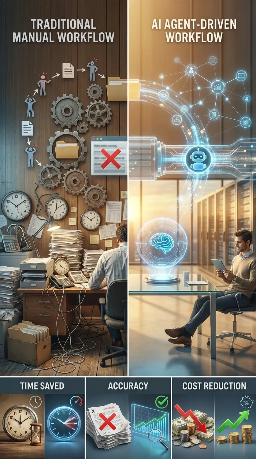 Ábra: Hagyományos és AI-vezérelt munkafolyamatok hatékonyságának összehasonlítása.